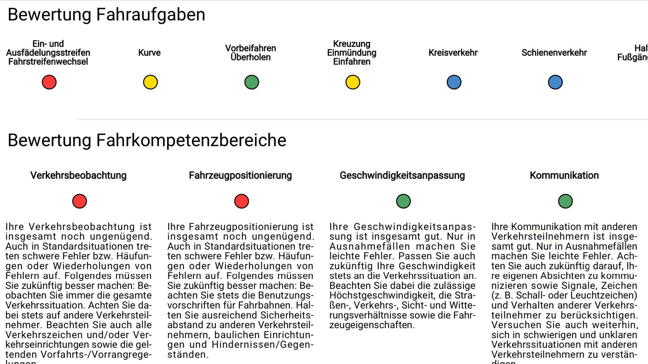 - Zu langsame oder zu schnelle Reaktionen auf Verkehrszeichen.