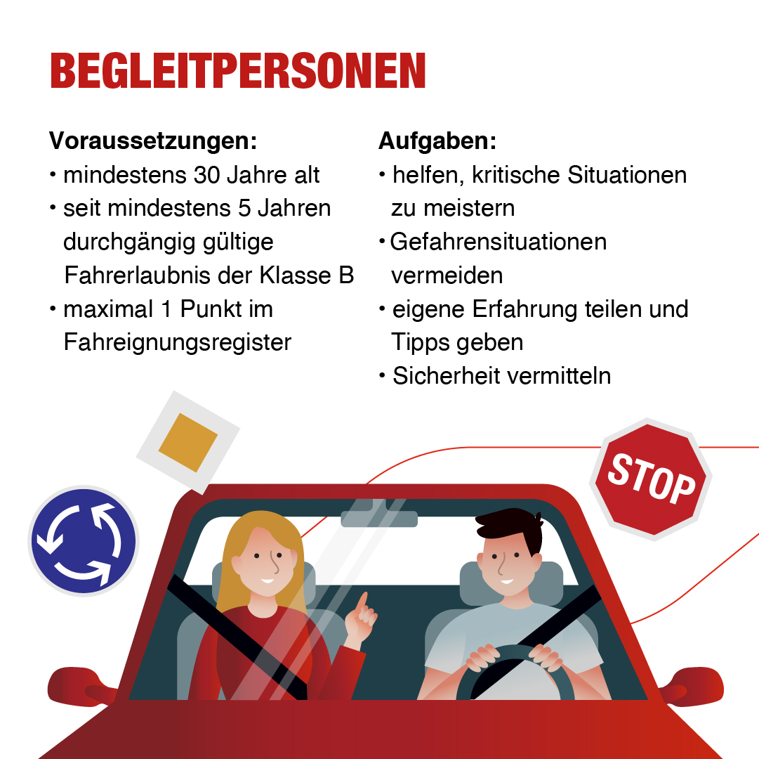 Der Begleiter spielt eine entscheidende Rolle im Prozess des begleiteten Fahrens. Er muss folgende Anforderungen erfüllen: