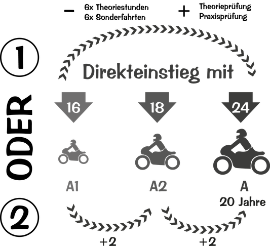 - Mindestens 8 Fahrstunden für den Führerschein Klasse A1 oder A2.